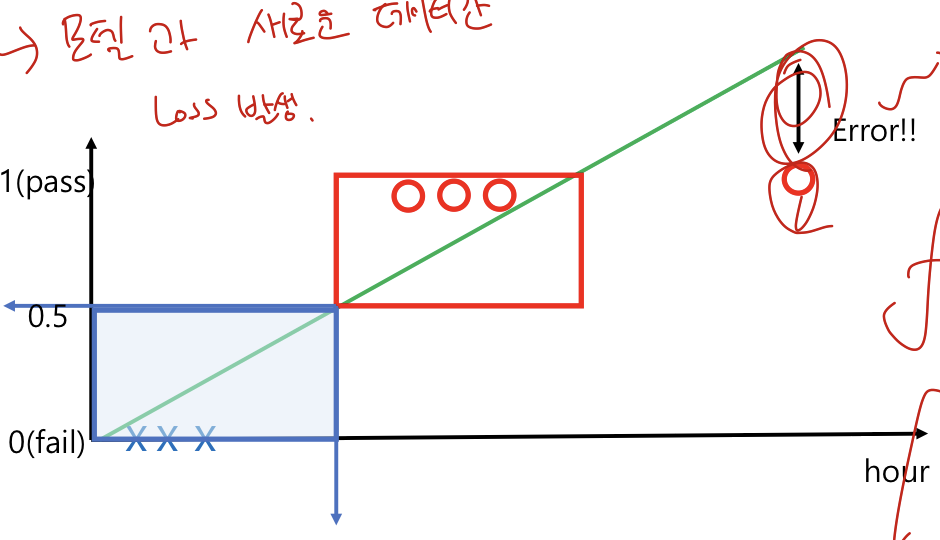 - 여기서 새로운 데이터가 추가 되었을때, 학습된 모델과 새로운 데이터간에 loss(오차)가 발생하게 되므로