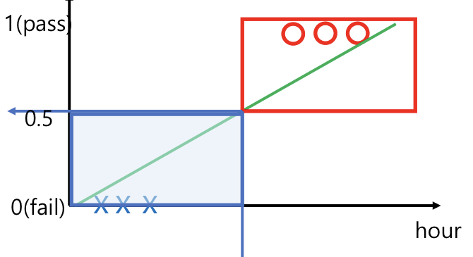 - 직선의 중간쯤을 넘어가지 않으면 불합격, 넘어가면 합격이라는 기준을 세웠을때