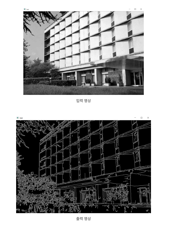 dst = cv2.Canny(src, 50, 150) # 하단 임계값과 상단 임계값은 실험적으로 결정하기