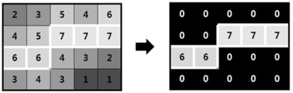 - 하나의 에지가 여러개의 픽셀로 표현되는 현상을 없애기 위해 그래디언트 크기가 국지적 최대인 픽셀만을 에지 픽셀로 설정한다.