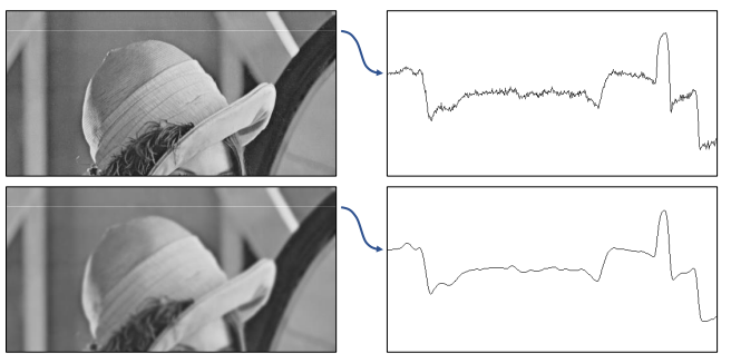- 이렇게 잡음이 있는 자글자글한 부분을 가우시안 필터로 완만하게 수정할 수 있다.