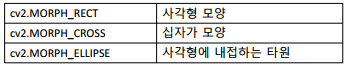 - 모폴로지 구조 요소를 생성해주는 함수가 있다.