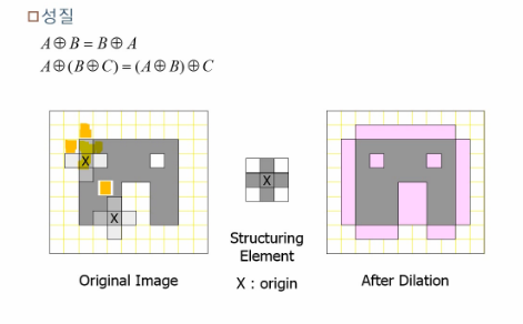 - Erosion과 마찬가지로 각 pixel에 structuring element를 적용한다.