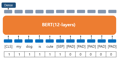 - BERT를 학습할 때 불필요하게 [PAD] 토큰에 대해 어텐션을 하지 않도록 구분시켜주어야 함.