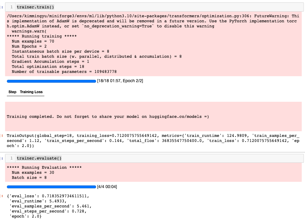 - 다음으로 학습 인수와 트레이너를 정의한다.