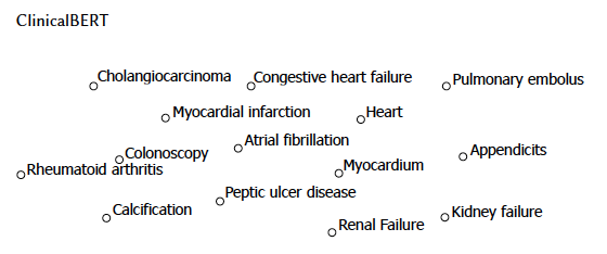 - 다음은 의학 용어의 표현들을 계산한 후 t-SNE를 이용해 각 용어들의 표현들을 도표화 한 것이다.