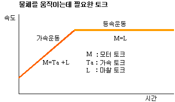 * 가속시에 필요한 토크는 가속 토크와 등속 토크를 더한 값이며, 등속 구간에서 필요한 토크는 등속 토크 만이다.