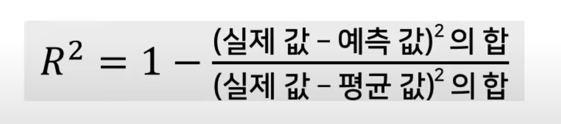 - R2 score의 경우 위 세가지 지표와는 달리 값이 1에 가까울 수록 성능이 좋다.