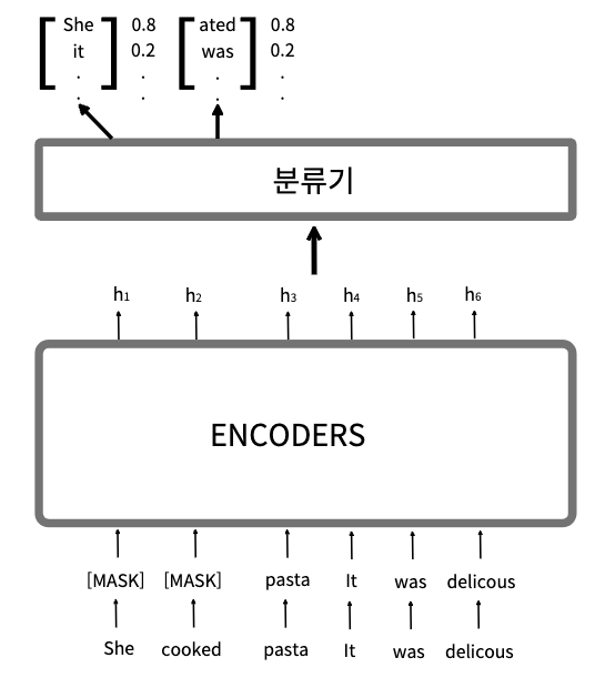 - 이 태스크는 마스킹 대상인 토큰을 다른 토큰으로 변경한 후 이 토큰이 실제 토큰인지 아니면 교체한 토큰인지를 판별하는 이진 분류 문제로 학습을 진행한다.