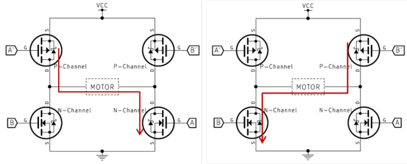 - H자 모양으로 생겨 H-bridge 회로라고 부른다.