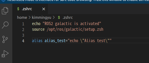 - alias_test를 지우고 galactic 버전의 Ros을 사용하기 위한 명령어를 입력해 보자.